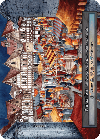 Annual Fair can be counted as a full source for all elements as long as you are adding 1 mana to the cost of the spell for each threshold pip required.